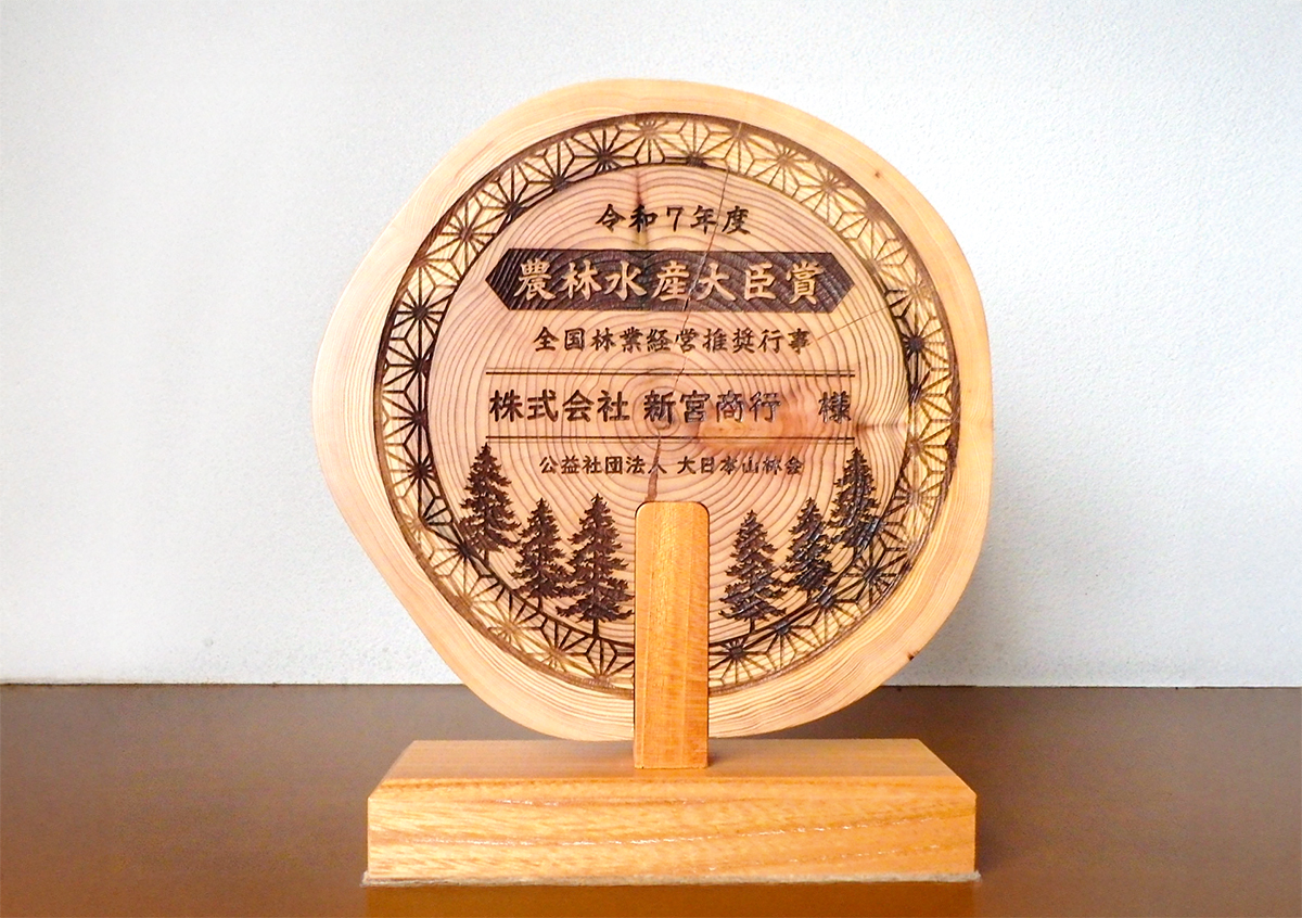 公益社団法人 大日本山林会が主催する「令和7年度 全国林業経営推奨行事」において、株式会社新宮商行が「農林水産大臣賞」を受賞しました。
